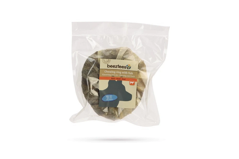 Lekkere kauwsnack in de vorm van een ring, met rund en vis.