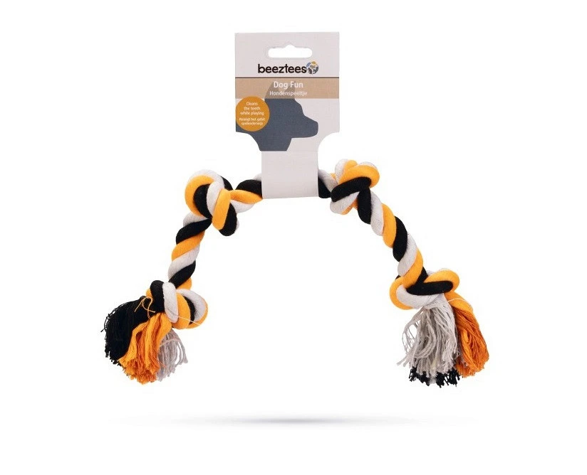 De Beeztees Flossytoy 4 Knopen is speelgoed waar jouw hond dol op zal zijn! Het flostouw is gemaakt van stevig katoen waarmee jouw hond spelenderwijs zijn gebit kan reinigen. Een flostouw kan worden gebruikt voor apporteer- en trekspelletjes, en daarnaast kan jouw hond er ook lekker op kauwen. Kauwen op een flostouw draagt bij aan het gezond houden van het gebit en het tandvlees. Belangrijk is wel, dat het flostouw wordt gebruikt onder toezicht.