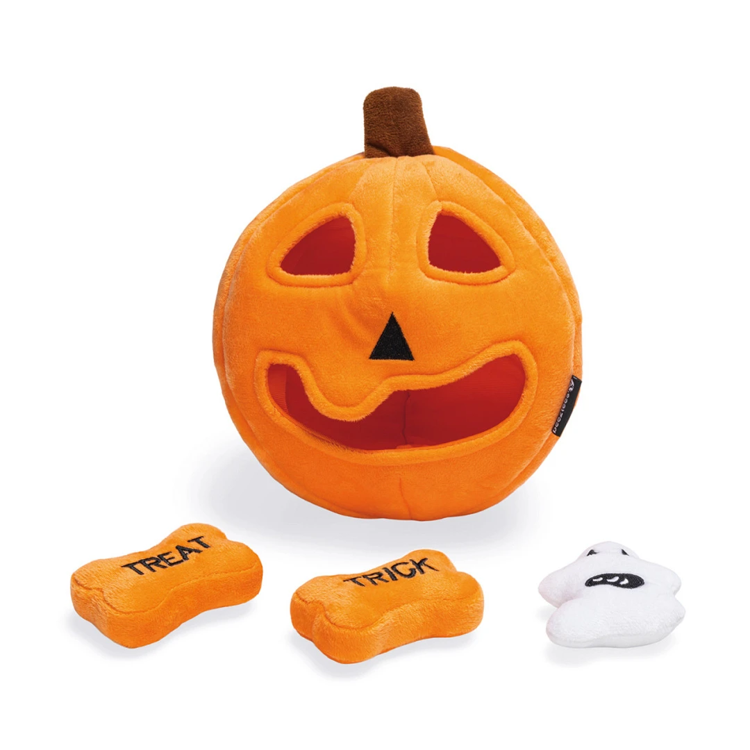 Zal het jouw hond lukken om de trick or treat botjes en het spook uit de pompoen te halen? Doordat je deze Halloween pompoen kan gebruiken als denkspelletje, zal het jouw hond niet alleen speelplezier bezorgen maar ook mentale stimulatie. In spannende situaties kan jouw hond zelfs rustig worden door zich te concentreren op het zoeken naar snacks en speeltjes die verstopt zitten in de pompoen.