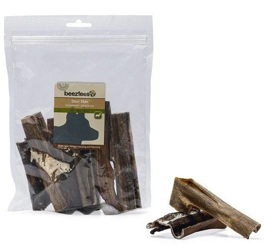 Beeztees Hertenhuid is een overheerlijke traktatie voor jouw hond. Deze snack is 100% natuurlijk. Daarnaast is de hondensnack glutenvrij en vrij van kleur- en smaakstoffen. Deze hondensnack is vrij taai, hierdoor zal jouw hond extra moeite moeten doen om de snack fijn te kauwen. Langdurig kauwen draagt bij aan de verzorging van het gebit en tandvlees van jouw hond.