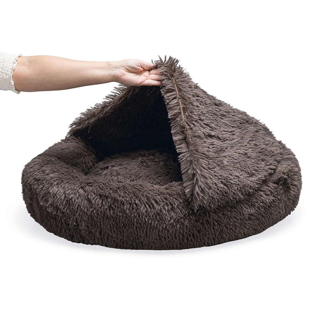 Heerlijke pluchen mand met geïntegreerde slaapzak voor als jouw hond het koud heeft. Kan in zijn geheel in de wasmachine.