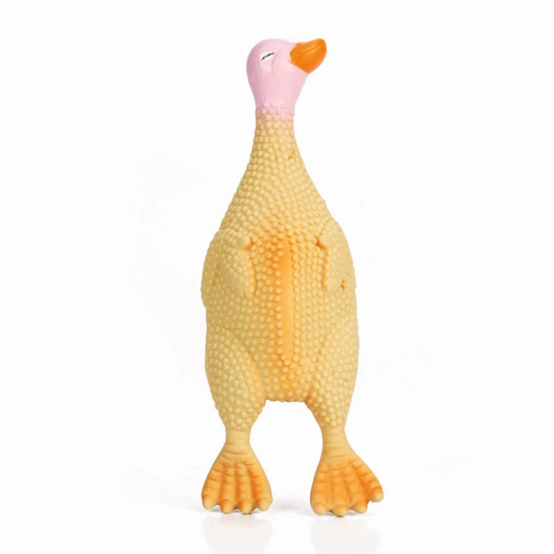 Speeltje in de vorm van een eend. Gemaakt van latex en met piep.