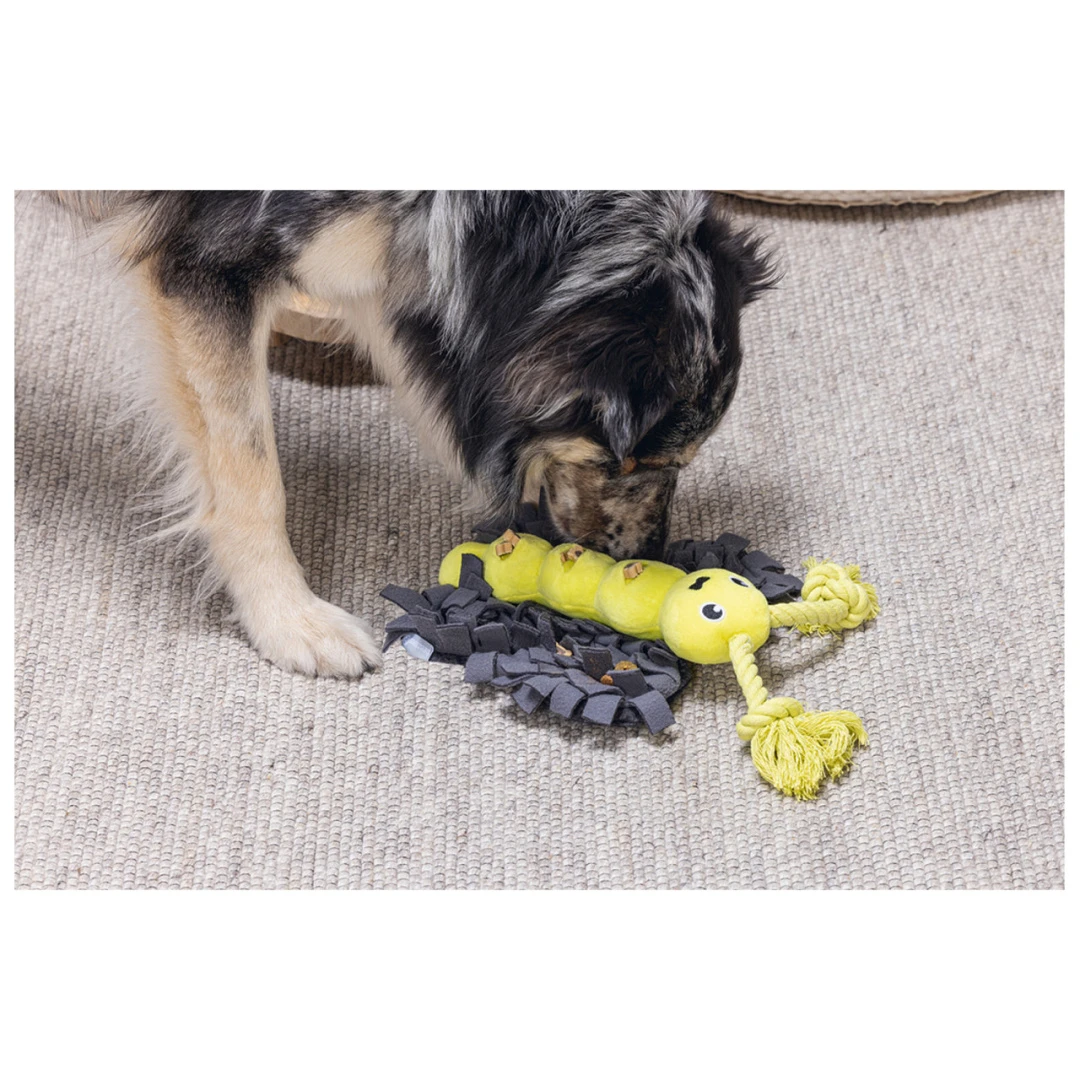Pluchen knuffel en denkspel. Met drie verstopplekken voor hondensnoepjes, snuffelmat vleugels en flostouw voelsprieten. Draagt bij aan mentale stimulatie.