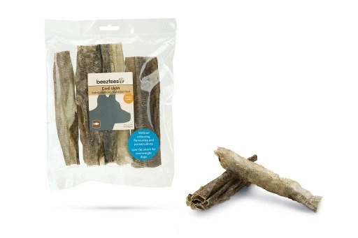 Deze Beeztees gedroogde kabeljauwhuid is een overheerlijke, veratwoorde traktatie voor jouw hond. Visproducten leveren verschillende waardevolle voedingsstoffen voor jouw hond. Ze zorgen onder andere voor eiwitten van hoge kwaliteit, voor een uitstekend soort vetten en voor vitaminen en mineralen. Tevens zit vis boordevol proteïnen en vitamines voor het opbouwen van de weerstand en een schitterend glimmende vacht. De kabeljauwhuid is zonder toevoegingen van kleur, geur, smaakstoffen en conserveringsmiddelen. Te geven als beloning, of gewoon als tussendoortje. Wie vis meeneemt in de dagelijkse voeding van de hond, zal profiteren van de verschillende vetten en zuren waaronder omega 3.