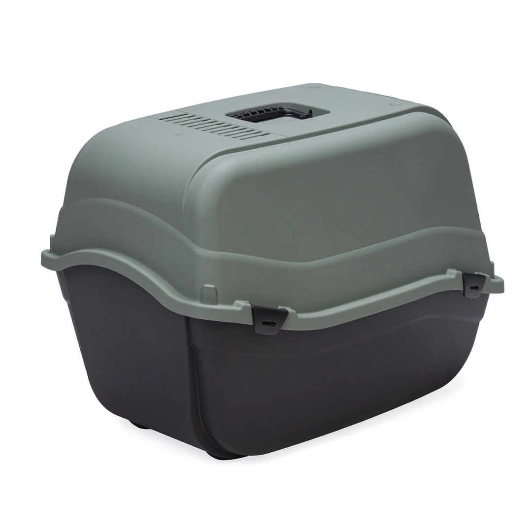 Eenvoudige, extra grote, kattenbak met een grote deur en handvat. Gemaakt van gerecycled plastic.