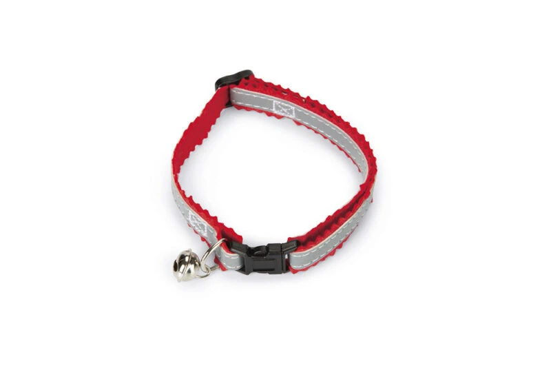 Reflecterend kattenhalsbandje met belletje. Verstelbaar van 20 tot 29 cm.