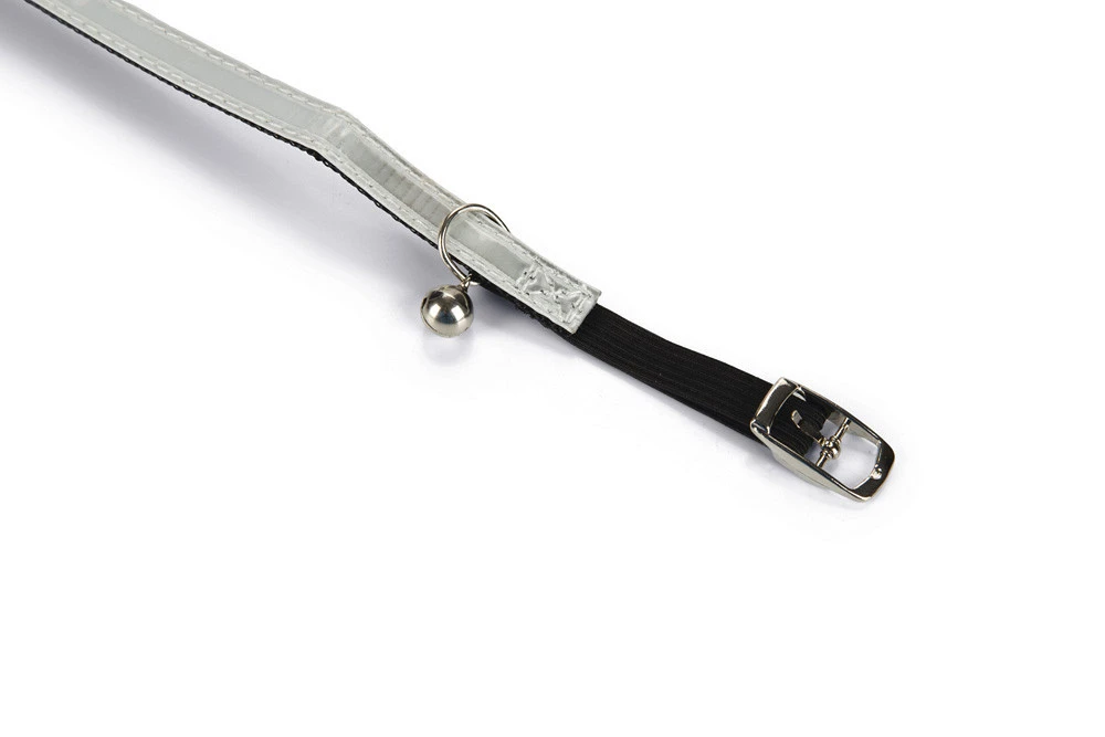 Reflecterend kattenhalsbandje met belletje. Verstelbaar van 23 tot 29 cm.