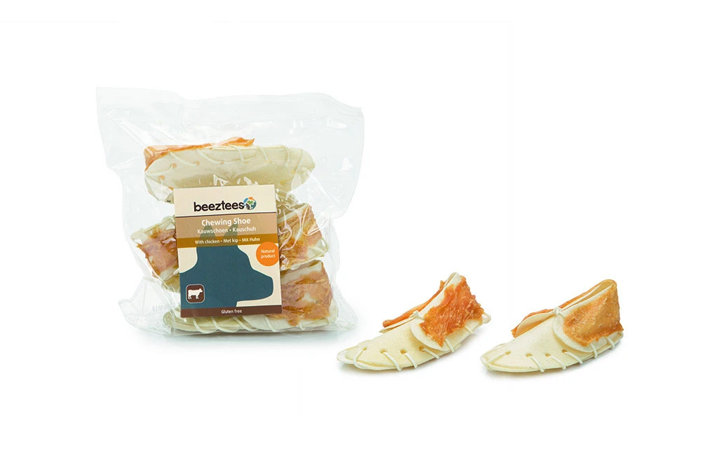 Kauwschoentje gevuld met kip is een overheerlijke Beeztees hondensnack. Te geven als beloning, of gewoon als tussendoortje.