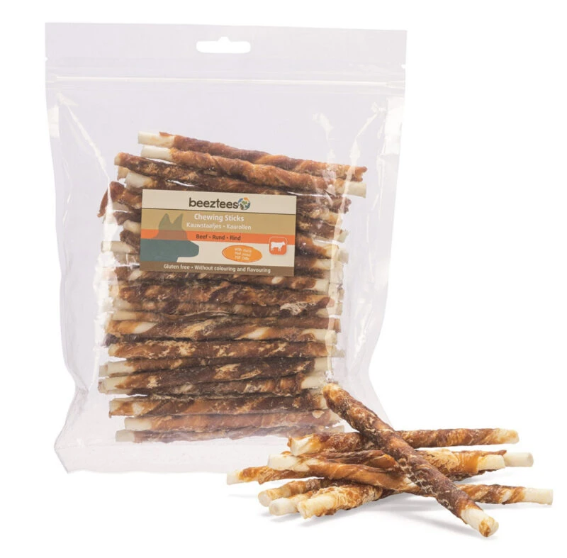 De Beeztees Kauwstaafjes Eend zijn overheerlijke hondensnacks. Deze natuurlijke snack gemaakt van runderhuid is omwikkeld met laagjes eend, wat de snack onweerstaanbaar lekker maakt voor jouw hond. Deze snack geeft jouw hond veel kauwplezier en kan worden gegeven als beloning of als tussendoortje. De snacks zijn glutenvrij en bevatten geen toegevoegde kleur- en smaakstoffen.