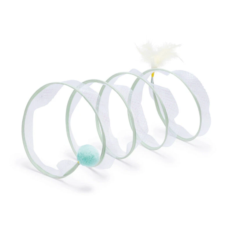 De Beeztees kitten speelspiraal Gabi is een kattentunnel en kattenspeeltje in één. Jouw kitten kan er namelijk doorheen kruipen. Door de metalen ringen die in deze tunnel verwerkt zijn, blijft de spiraal open staan. Door de open vormgeving, kan jouw pluizige vriendje alles constant goed in de gaten houden. De buitenzijde is voorzien van een stof met glimmertjes en de uiteinden bevatten leuke speelelementen, wat zorgt voor extra uitdaging. Aan het ene uiteinde zit een veertje en aan het andere een speelballetje. Jouw kitten zal zichzelf hier eindeloos mee kunnen vermaken. Een mooie bijkomstigheid, je kunt de spiraal opvouwen als je hem even niet gebruikt. Laat jouw kleine pluizige vriend maar op verkenning gaan in en met dit prachtige kittenspeelgoed.