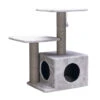 Moderne krabpaal met huisje, sisal stam en ligplateau.