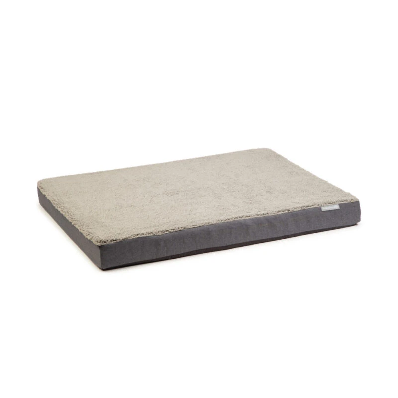 Drukverlagend hondenkussen met optimaal ligcomfort door een toplaag van memory foam. Met hoes van heerlijk zachte sherpa fleece en antislip onderkant.