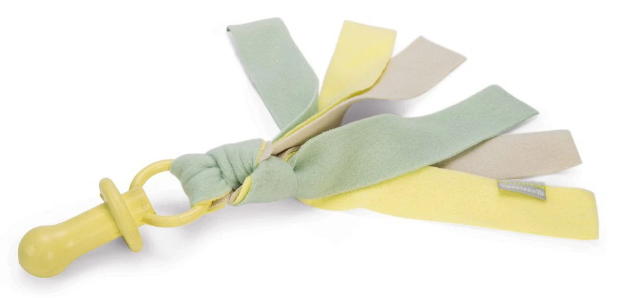 2-in-1 speeltje van rubber en fleece in de vorm van een fopspeen. Om mee te spelen en op te kauwen.