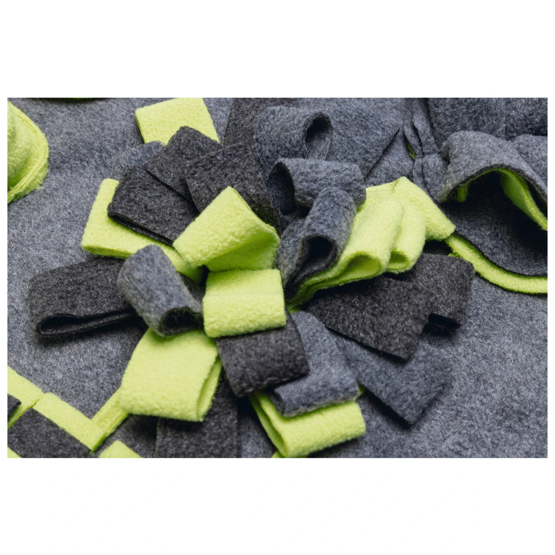 Zacht pluchen snuffelmat voor het verstoppen van hondensnoepjes. Heeft verzwaarde zijkanten en is wasbaar op 30 graden. Draagt bij aan mentale stimulatie.