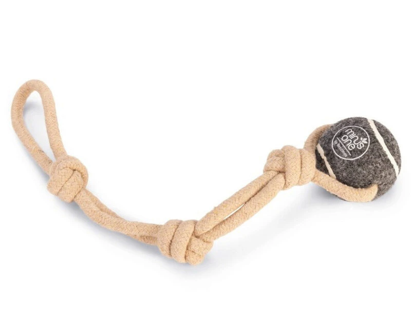 Tennisbal met koord, gemaakt van milieuvriendelijke materialen. Geschikt voor trek- en apporteerspelletjes. Door het koord kan deze bal extra ver gegooid worden.