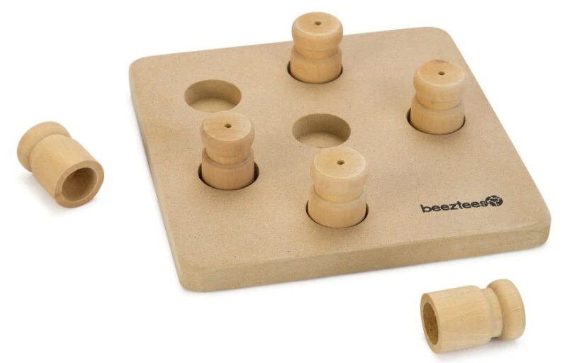 Door iets lekkers in het spel te verstoppen, zal jouw hond worden uitgedaagd om dit te zoeken. Verstop een of meerdere koekjes in de gaten in het spel en dek ze vervolgens af met de houten knoppen. Jouw hond zal deze houten knoppen moeten verwijderen om uiteindelijk bij de beloning te komen.