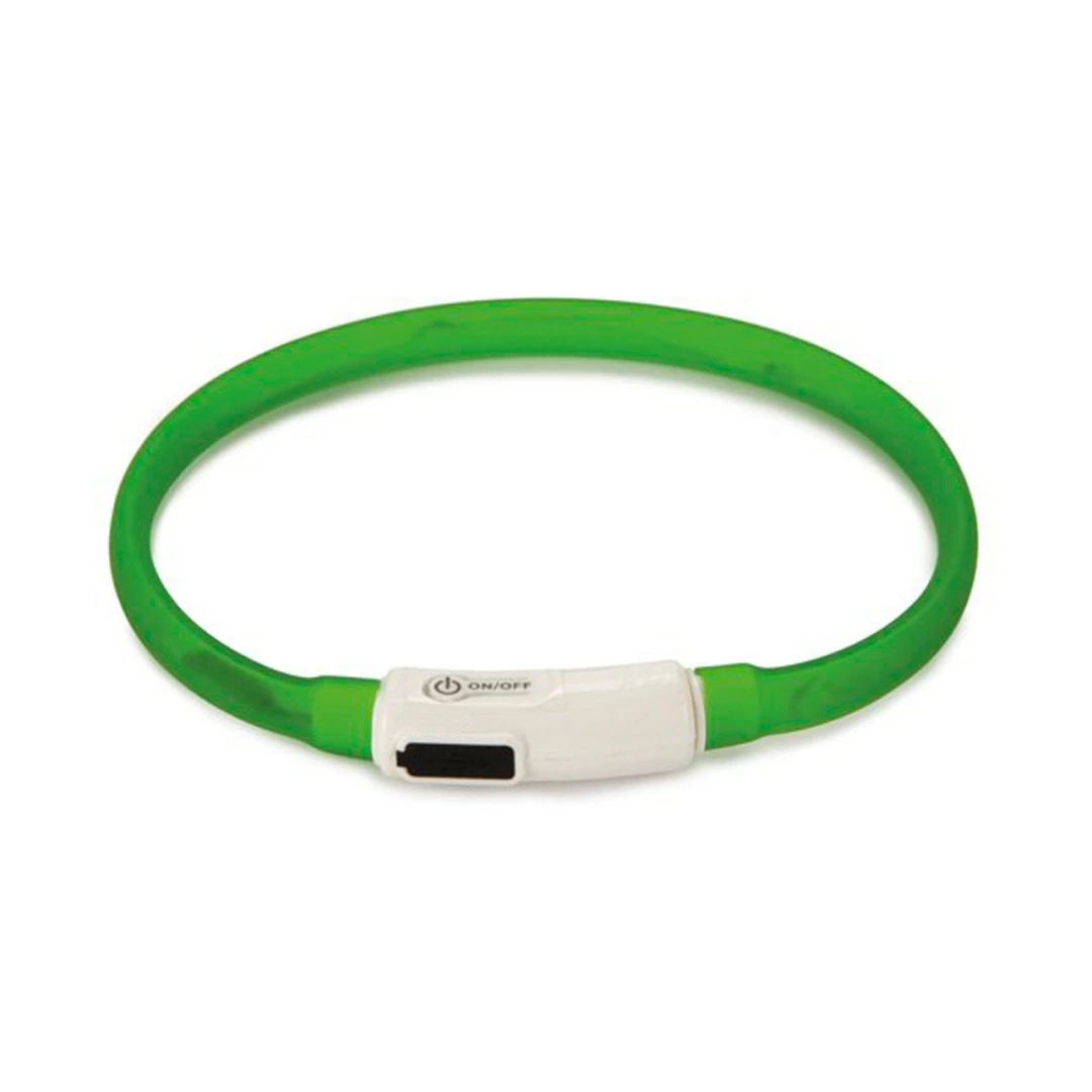 Lichtgevende halsband voor veilige wandelingen in het donker. Kan via usb-aansluiting worden opgeladen.