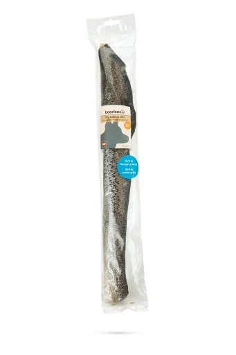 Beeztees vette zalmhuid is een hondensnack van prachtige grove stukken zalmhuid met vlees, welke op een natuurlijke manier zijn gedroogd, zonder toevoegingen, of conserveringsmiddelen. Dit product is ook voor grote honden een taaie kluif. 100% zalm. Je kunt er desgewenst met een schaar kleinere stukken van knippen.