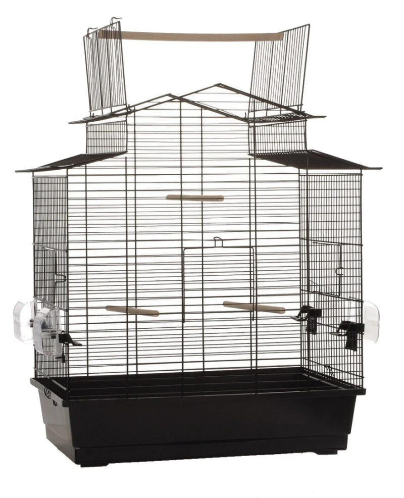 De kooi is gemakkelijk schoon te maken door de lade. Het dak kan eventueel worden opengezet om zo een vrije zitplaats voor uw vogel te creeren. Inclusief zitstokjes en drink en voederbakjes.